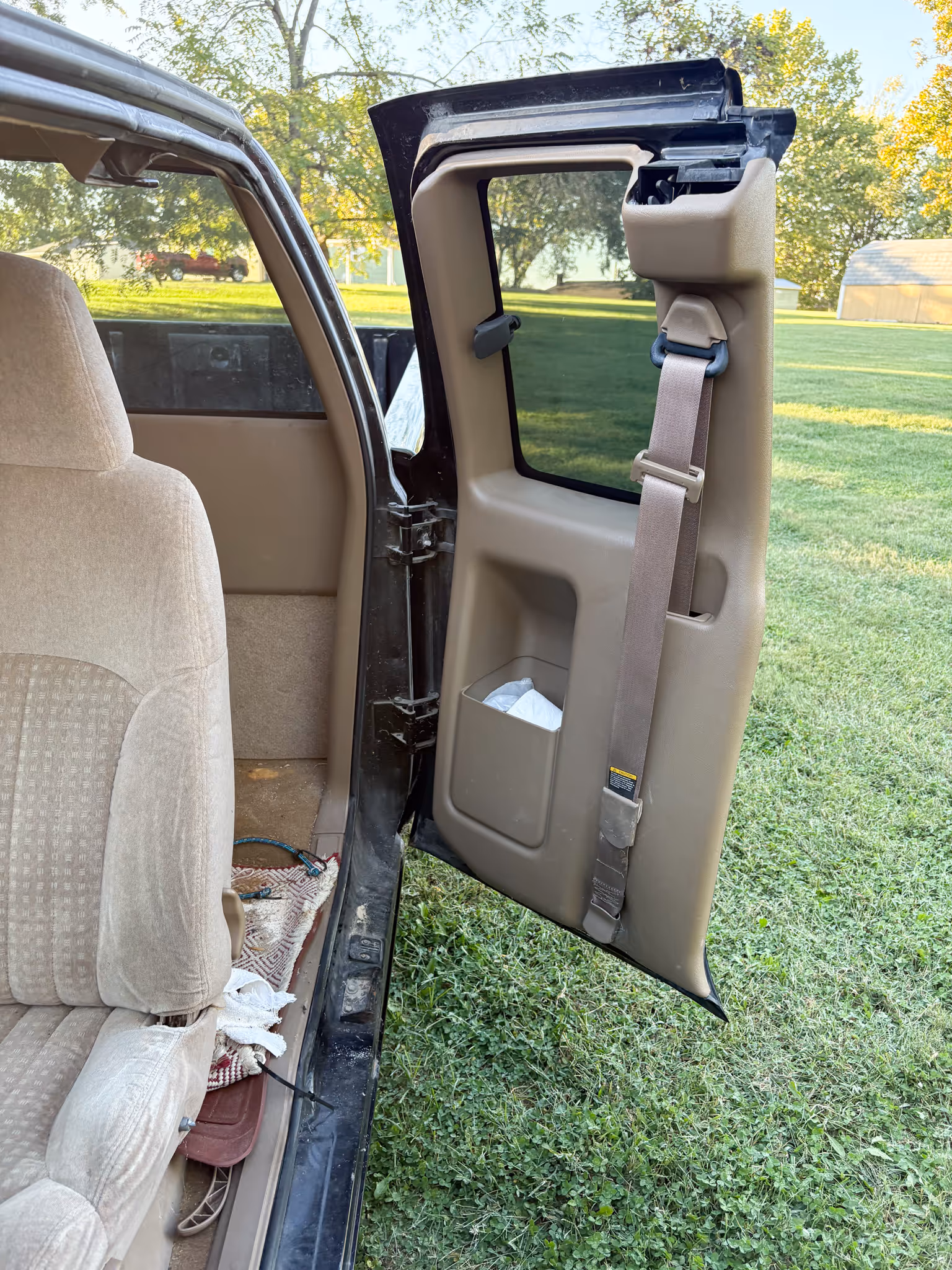 LAWN & GARDEN, TOOLS: JD X300 riding mower, new battery, nice mower * JD lawn sweep * Lawn cart * garden tiller, gas powered *chainsaw, used once * Jumper cables * Shop vac * Pet taxi * New life jackets * Ext ladder * Air tank * Misc tools