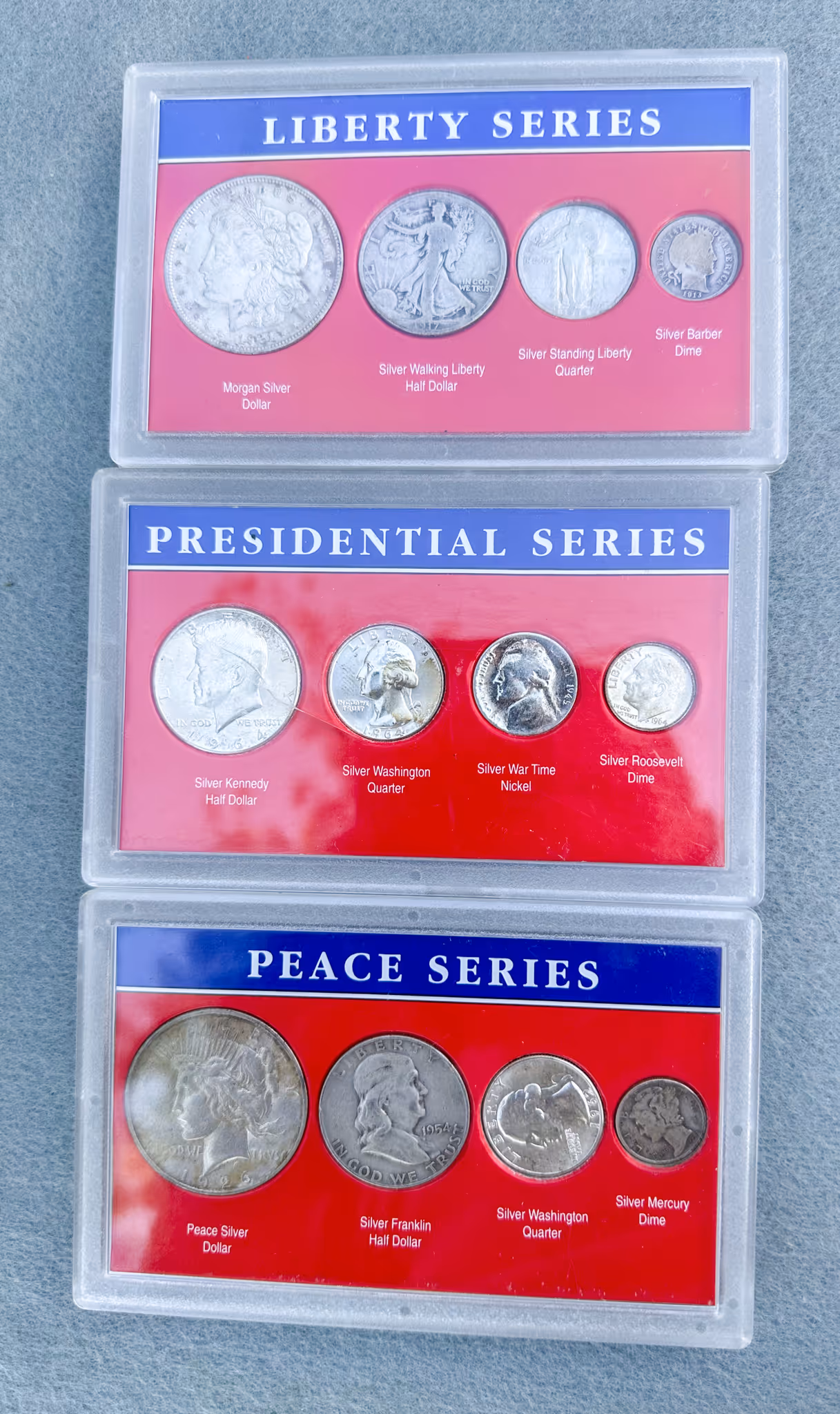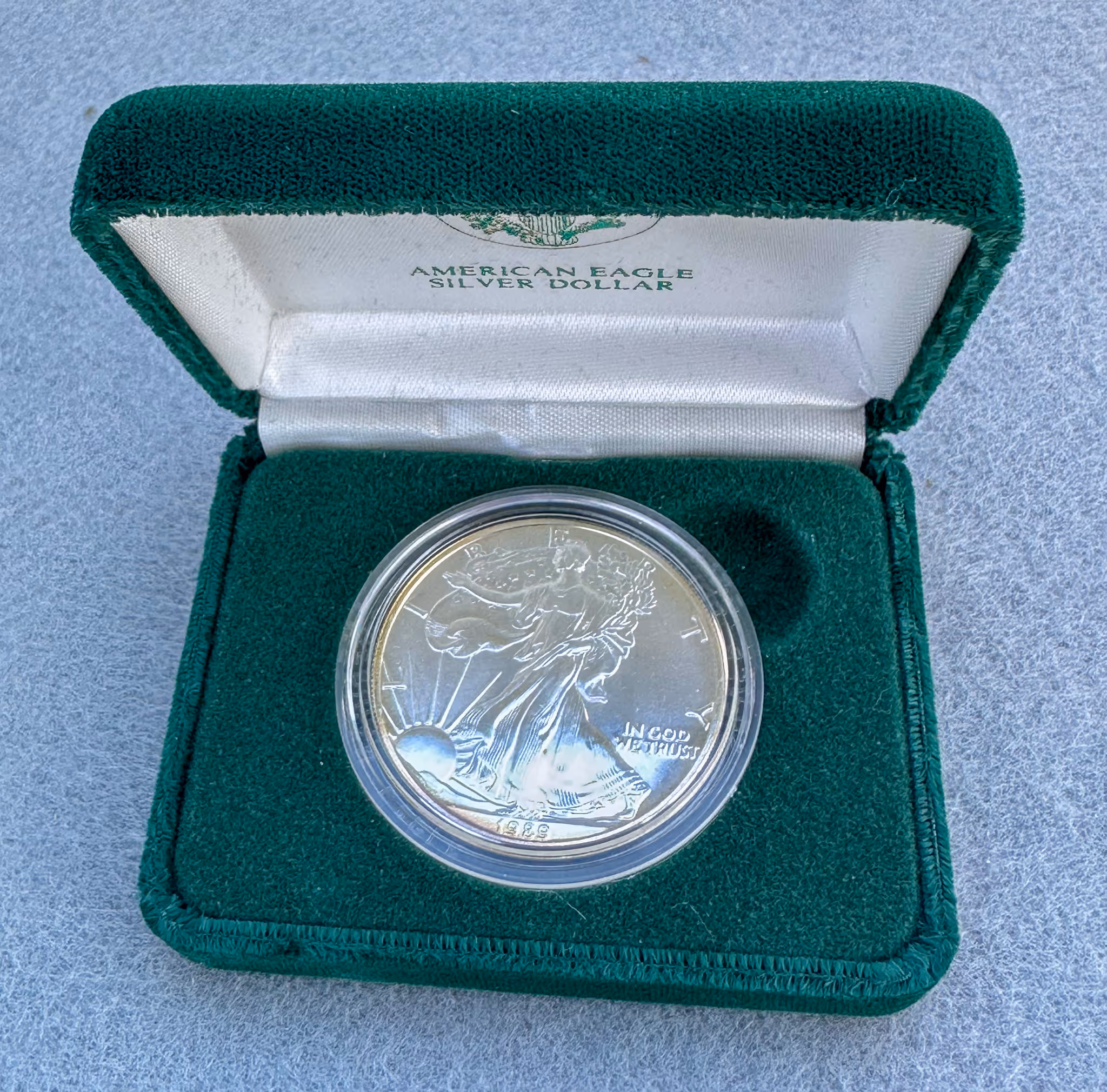 CURRENCY & COINS: Silver dollars, 1885,1879S, 1883O & others * 1989 Silver Eagle * Silver quarters & half dollars * 1934A $500 bill * Liberty, Presidential & Peace series silver coins * 2 US Mint Olympic silver coins * US Liberty coin set * Royal Canadian coins