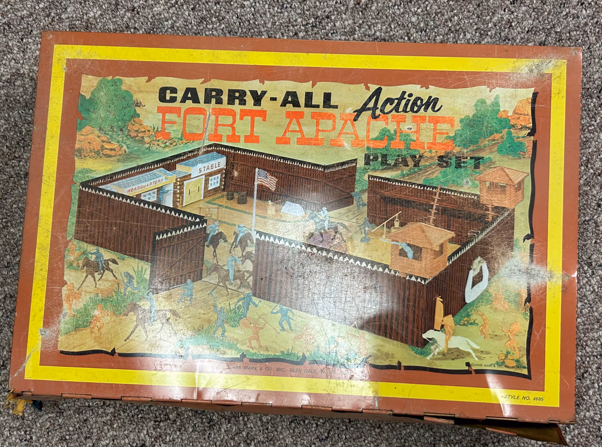 TOYS, COLLECTIBLES, LAMPS, BOOKS: Ford 7500 backhoe *Buddy L trucks * Space Station 6 Million dollar man in box * Tonka Fire truck *Carry All Cowboys & Indians * Simon says & other board games * Lite Brite * Large blow mold Snowman * Seth Thomas walnut kitchen clock * 2 Wooden decoys * School bell * Nice Art wood guitar * Violin in case w/ bow * vintage wood clarinet * German dolls * Shawnee Pig shakers * Old cameras * Pyrex * Corning ware *Henning’s Dairy bottle * Brass umbrella shade lamp * Aladdin Washington Drape lamp * Fancy HP umbrella shade lamp w/ prisms * Cranberry opalescent entry way light * Nutmeg mini lamps * Few quilts * Old ties * Hats * Oil lamps * Chrome step stool * Fox Hunters engraving * Charles Russell & Snidow western prints in frames * Royals & Cardinals pennants * Christmas décor * Ceramic Great Dane* King Clevland 600 trumpet * Costume jewelry * Car banks * Set of miniature Longfellow books * WWII books * Savatar * The Writings of Mark Twain * Zane Grey hardback books & many more *